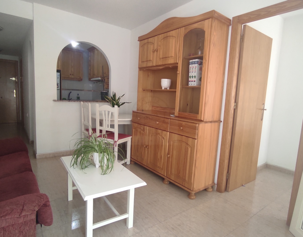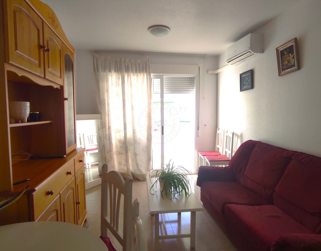 Se vende acogedor piso en Torrevieja, zona Centro / El Molino, ideal tanto como vivienda habitual, segunda residencia o inversión. La vivienda cuenta con 50 m² distribuidos en una práctica cocina americana, salón-comedor muy luminoso con salida a una agradable terraza, 1 dormitorio doble con armario empotrado y baño completo con ventana, lo que aporta ventilación y luz natural.